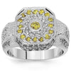 10K Solid White Gold Mens Diamond Ring with Yellow Diamonds 3.75 Ctw