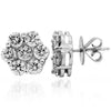These diamond stud earrings are handcrafted in lustrous 14k white gold. The center is detailed with brilliant round cut diamonds which total to 2.85 carats. The frame measures to 12 mm in length and width and locks with screw back closure.