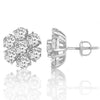 14K White Solid Gold Round Cut Diamond Cluster Earrings 4.00 Ctw