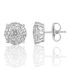 These exquisite large unisex cluster diamond stud earrings are crafted from fine 14KT white gold. Brilliant round cut diamonds in each earring are placed on a prong setting to form a beautiful shape. These outstanding fashion stud earrings gleam with beauty and elegance!