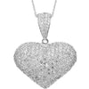 This gorgeous womens diamond heart pendant is handcrafted in 14k white gold. The frame is outlined with round cut diamonds which are prong set along the heart line and are total to 5.50 carats weight. Gleaming in absolute perfection, this pendant is an ideal gift for someone special!