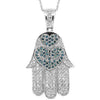 14K White Solid Gold Womens Diamond Sapphire Hamsa Pendant 2.71 Ctw