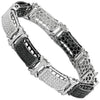 This custom made mens double row franco bracelet measures 8.5 Inches in length and 15 mm in width. Crafted in lustrous 14K White Gold the frame weighs approximately 147.5 grams. This mens franco bracelet securely locks with a durable slide in clasp.