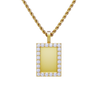 This frame memory pendant is a must have a piece to any collection. Made with 10k yellow gold this piece houses 5.26 carats. Any image can be placed on this memory pendant. This pendant come in 3 different sizes.