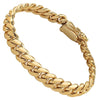 This Rose Gold Cuban Link Bracelet is represented lustrous gold topped off with a professional bright polish for extra shine. This bracelet is in 10.5 mm wide, 8 inches and weighs 76 grams. This interlocking-link chain bracelet is chunky in design yet comfortable for daily wear.