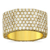 This one of a kind mens diamond wedding band is handcrafted in 18k white gold. Brilliant white round cut diamonds are micro set half way around the band and total to 5.50 carats. The band measures to 9.5 mm in width and weighs 10.2 grams.