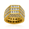 This exquisite mens ring is handcrafted in lustrous 14K yellow gold. The center is set with round cut white diamonds and pave set with numerous small round cut diamonds. The frame measures to 20.65 mm in width and weighs 45.7 grams. Featuring a unique full of intricate details design, masterfully crafted to meet the highest industry standards, this statement crown diamond ring is truly one of a kind.