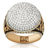 This powerful diamond pinky ring is very wide and takes a large amount of space on your hand. This ring is big show of force since it standout, it yells wealth. This block buster ring houses 7 carats of diamonds in 14k gold. This strong ring weighs 23.7 grams.