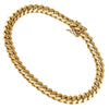 This large hollow cuban link bracelet is made from lustrous 10k yellow gold. The link is a hollow link and is not as heavy as other cubans but is still stunningly crafted in the same solid cuban pattern. On the lock you will notice beautiful cz stones pave set in an array of round stones.