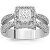 14K White Solid Gold Womens Diamond Square Halo With Side Stones Engagement Ring 1.52 Ctw