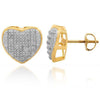 These lovely womens diamond heart earrings are handcrafted in lustrous 10K white gold. The frame is highlighted with numerous small round cut white diamonds which are 0.10 carats total weight. The frame measures to 6.6 mm in length and width and weighs approximately 0.8 grams. Securely locking with a screw back closure, these diamond stud earrings are ideal for an every day casual wear.
