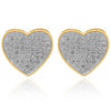 These large mens diamond stud earrings are handcrafted in lustrous 14k white gold. Each earring is micro set with small round cut diamonds which are SI in clarity and H/I in color. The frame measures to 18.4 mm in length and width and securely locks with screw back closure.