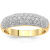 This alluring womens diamond wedding band is crafted in highly polished 14K White Gold. The center is pave set with numerous round cut diamonds. This womens wedding band gleams with elegance and sophistication.
