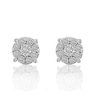 These gorgeous diamond cluster earrings are handcrafted in lustrous 14K White Gold with lovely brilliant round cut diamonds stones 1.90 Ctw VS1/2 clarity, GH color in prong setting.The frame measures to 9.98 mm in length and 10.08 mm in width. These beautiful earrings are ideal for an every day casual or special wear.